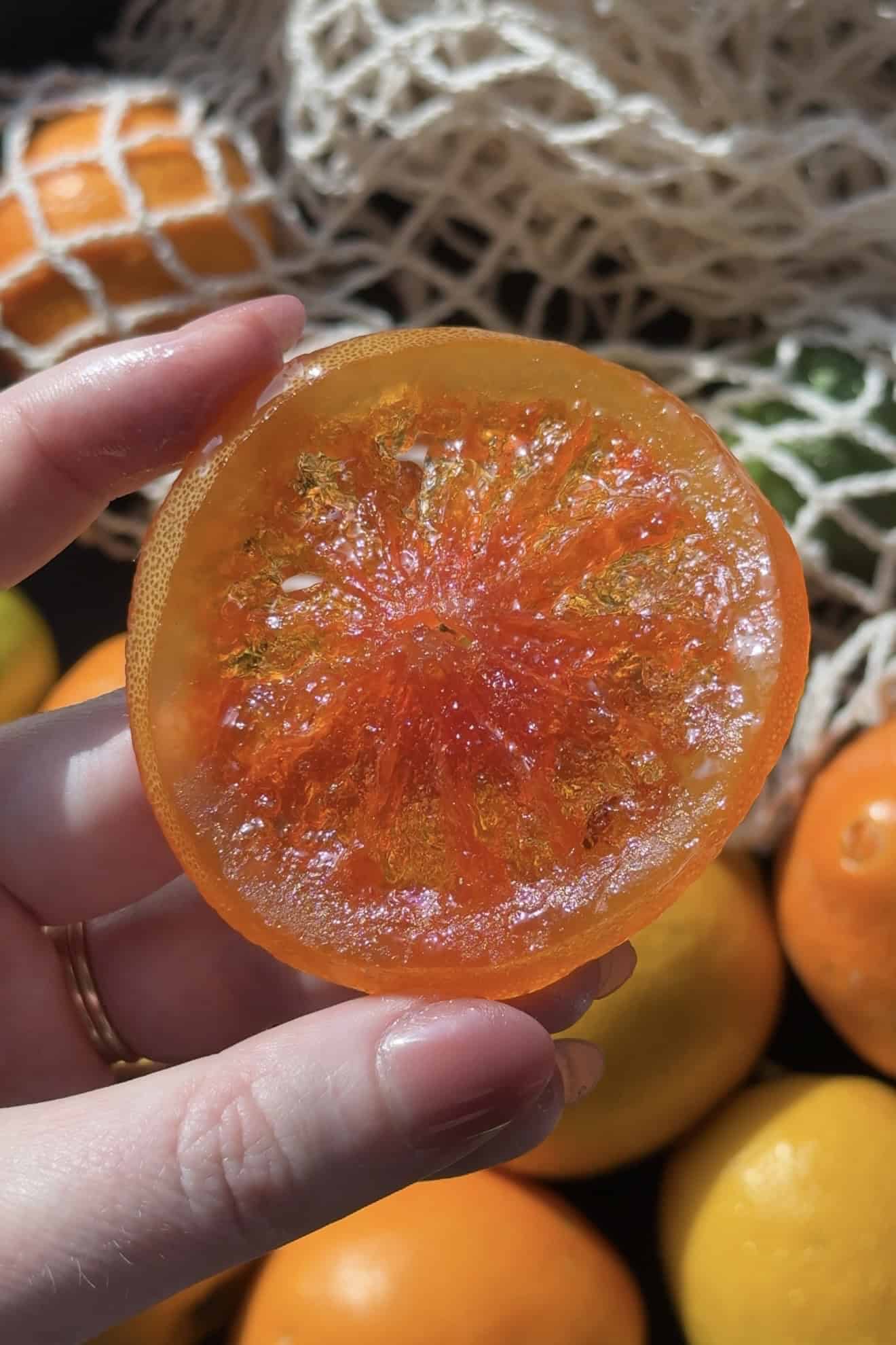 - Slice thin for the best texture: Aim for slices about ¼-inch thick. Thinner slices candy more evenly, dry faster, and create that glossy, translucent finish that’s ideal for garnishing desserts and drinks.